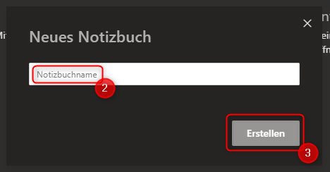 - Geben Sie nun den Namen Ihres neuen Notizbuches ein und bestätigen Sie dieses mit der Schaltfläche „Erstellen“.
