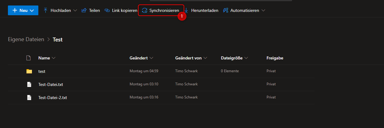 - Wählen Sie im oberen Reiter die Schaltfläche „Synchronisieren“.