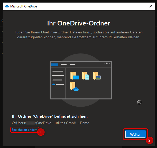 - Navigieren Sie zu dem Ordner, welchen Sie Lokal Synchronisieren wollen.