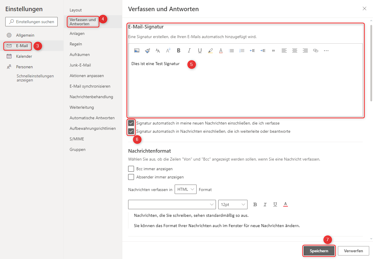 - Geben Sie nun Ihre Signatur in dem Textfeld ein. Dort können Sie diese auch Formatieren.