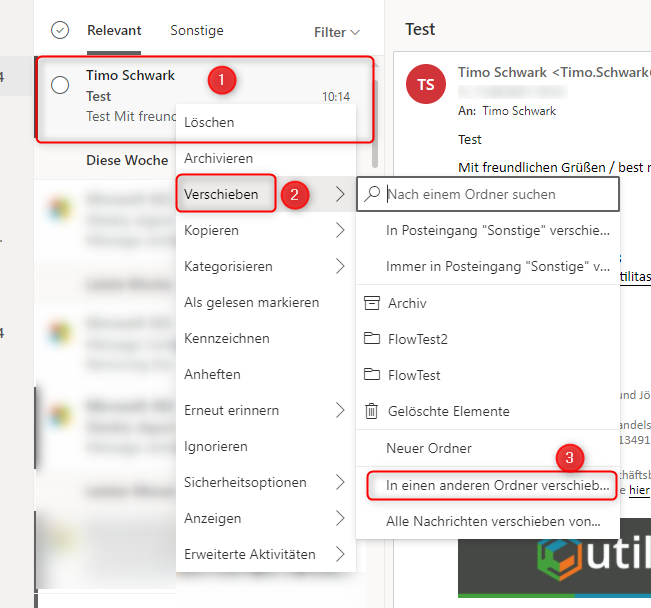 - Machen Sie einen Rechtsklick auf Ihre E-Mail, welche Sie verschieben möchten.