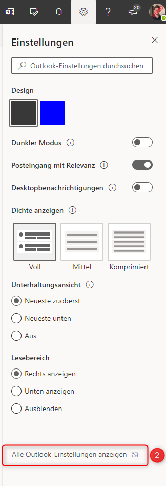 - Wählen Sie ganz unten den Punkt „Alle Outlook-Einstellungen anzeigen“.