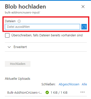 Ist diese ausgefüllt, kann diese in den jeweiligen Container hochgeladen werden: