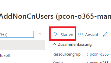Hier muss nichts weiter vorbereitet werden. Das Runbook kann direkt über Starten gestartet werden.