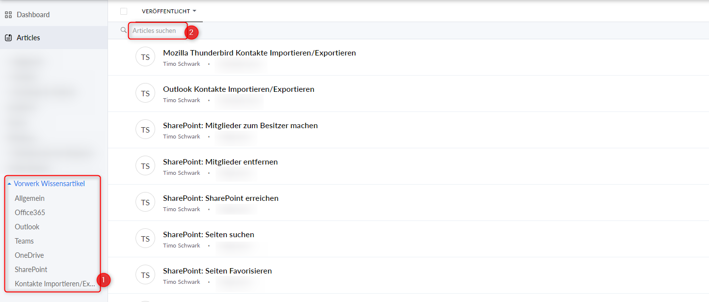 - Wählen Sie im linken Reiter „Vorwerk Wissensartikel“.