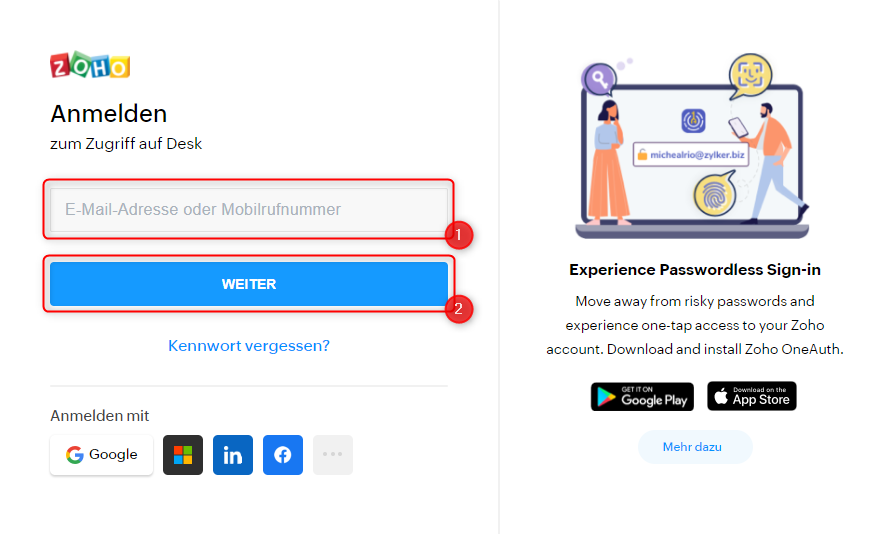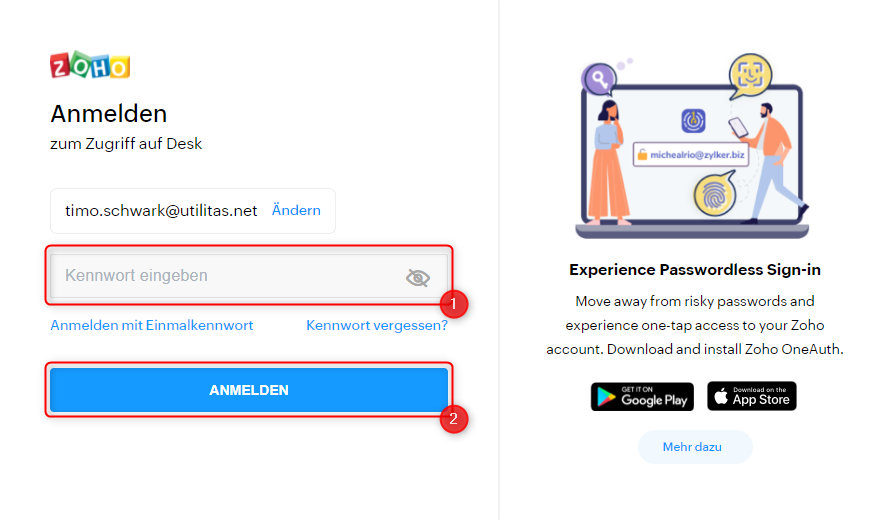 - Geben Sie Ihr Passwort zu der dazugehörigen E-Mail-Adresse ein.