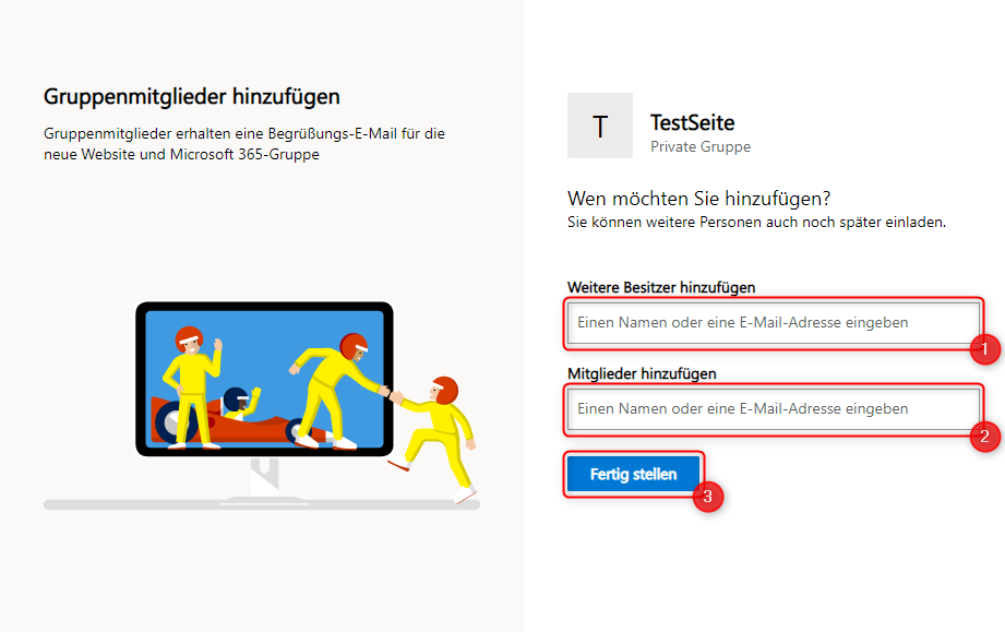 - Fügen Sie nun Besitzer und Mitglieder zu der Seite hinzu.