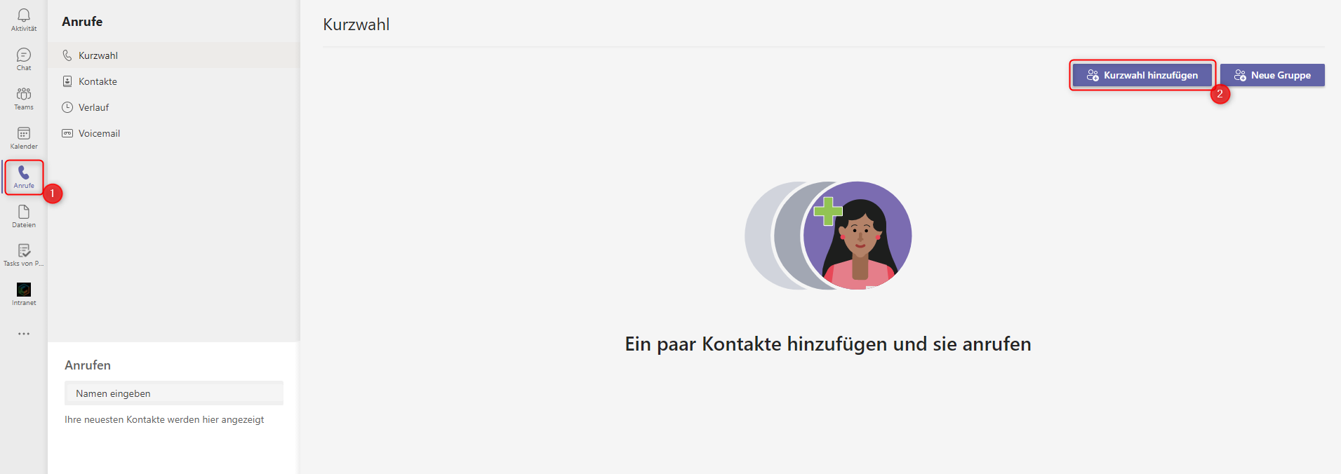 - Klicken Sie nun oben rechts auf die Schaltfläche „Kurzwahl hinzufügen“.