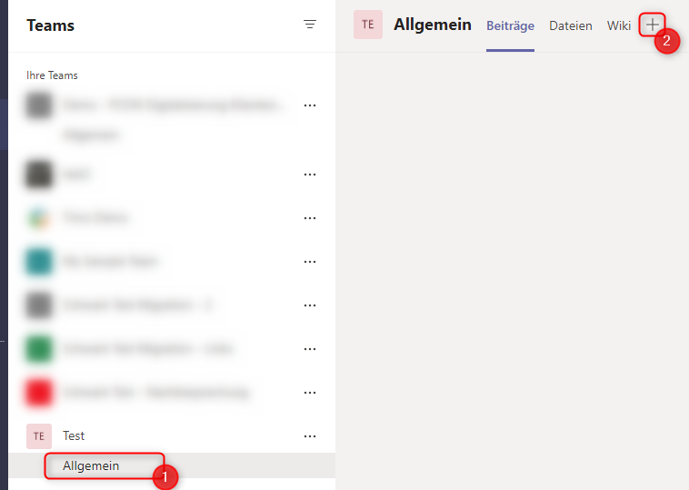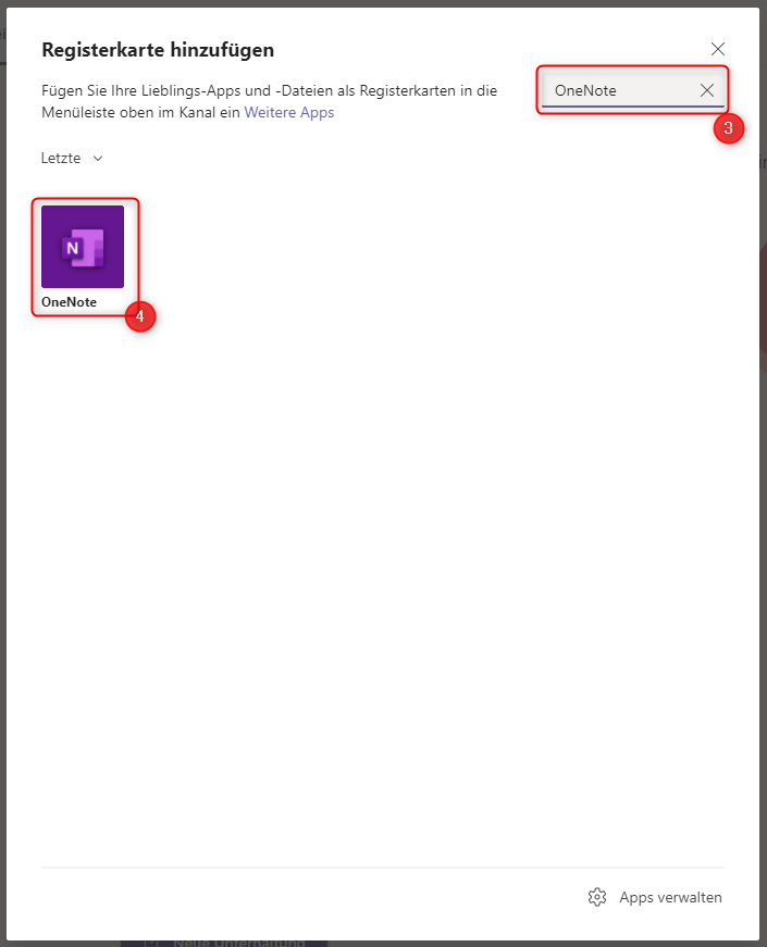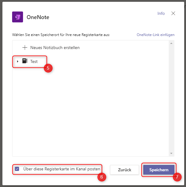 - Wählen Sie Ihren Kanal aus, in welchem OneNote eingebunden werden soll.